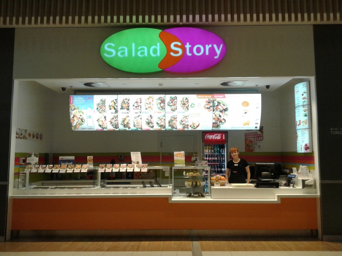 Duże, zdrowe i szybko podawane porcje najwyższej jakości sałatek w bardzo rozsądnej cenie! Salad Story to restauracja szybkiej obsługi serwująca komponowane na oczach klienta sałatki, kanapki na ciepło, zupy i ciastka. Wszystkie sałatki przyrządzane są na bazie mieszanki zielonych sałat (rzymskiej, lodowej i radicchio) a stałym dodatkiem są makarony, grzanki i pieczone kartofelki. Składniki wszystkich potraw są najwyższej jakości tak więc np. chrupiące sałatki podawane są z pachnącymi pomidorkami cherry, grilowanym mięsem, rybami, serami i owocami morza. Salad Story nie stosuje żadnych sztucznych utrwalaczy smaku, dresingi kręcone są w restauracji, a zupy aromatyczne i bogate w smaku można podawać nawet małym dzieciom.