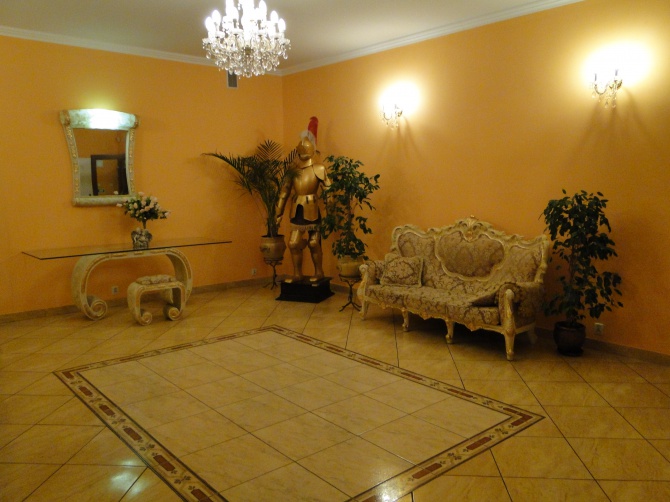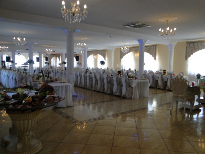 | W kompleksie znajdują się dwie sale bankietowe z zapleczem gastronomicznym, restauracja "OLIMP", połączona z salą bilardową, baza noclegowa na 80 mijesc w pokojach 2 i 3-osobowych z pełnym węzłem sanitarnym, TV, oraz dostępem do internetu, ekskluzywne apartamenty dla nowożeńców i gości, odnowa biologiczna (sauna, jacuzzi, siłownia), wiata grillowa oraz duży parking. | ||