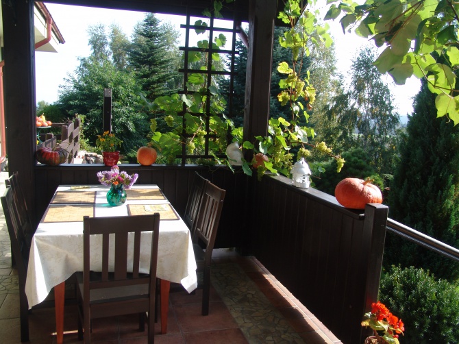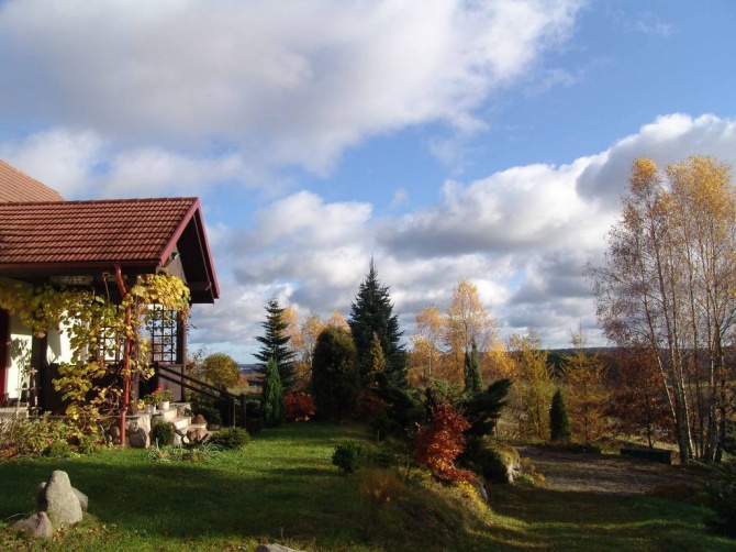 Mykowa Góra to wyjątkowe miejsce, o którym nie można zapomnieć, z pięknym widokiem i dużą przestrzenią wokół domu wśród wspaniałych roślin, w sosnowym lesie, jesienią pełnym grzybów.