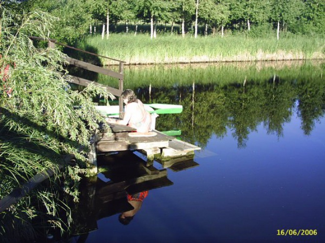 -piaszczystej plaży - kąpiel w stawie lub w jeziorze, z pomostu, z brzegu, lub z łodzi, a do piszczystej plaży trzeba dojechać lub dopłynąć łodzią,