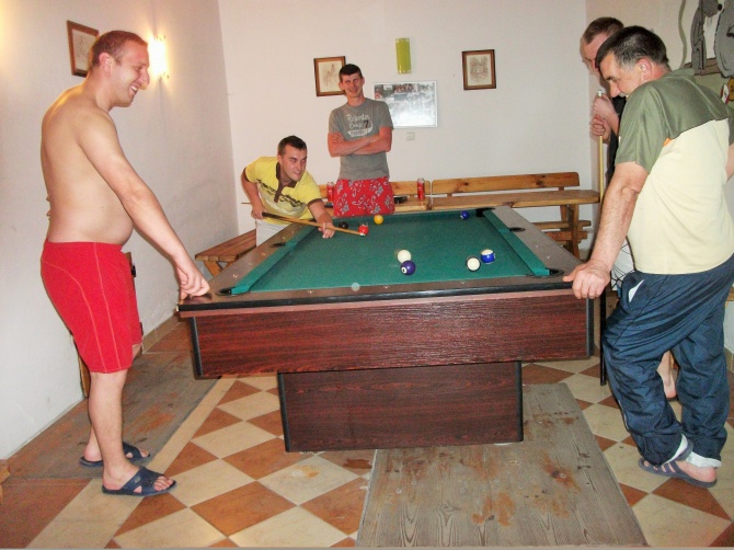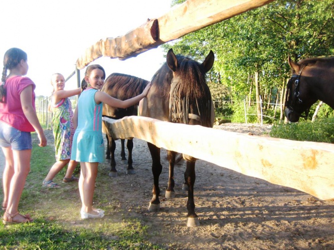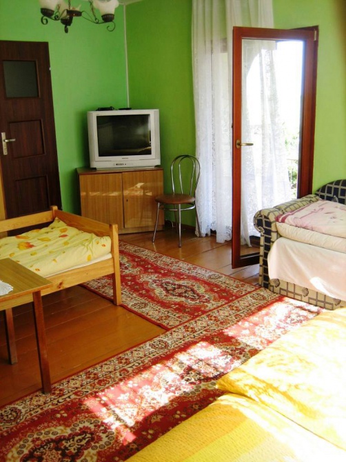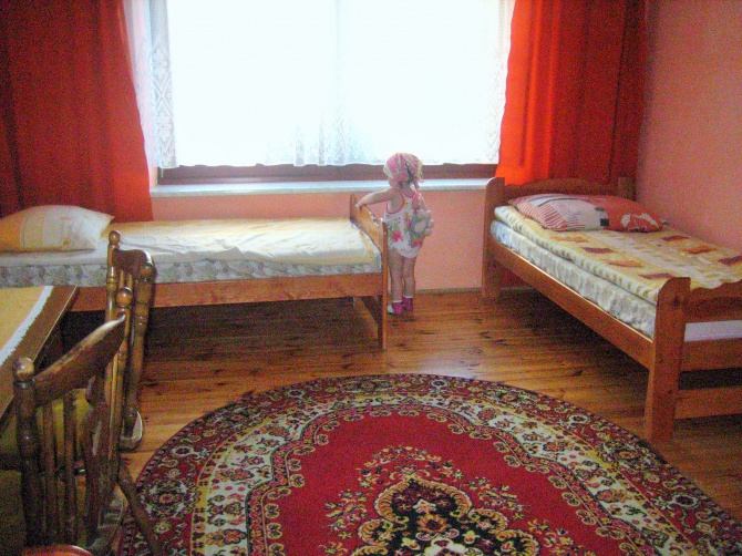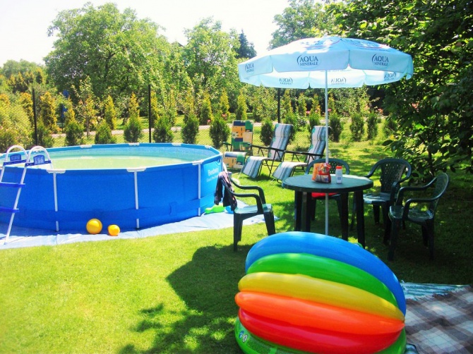 Mamy oddzielny dom dla gości 5 pokojowy/2,3,4,5/ z łazienkami aneksami kuchennymi,TV, W-fi, świetlicą z bilardem, chatą zbója z kominkiem,kuchnią gdzie przygotowywane są domowe obiady .Zagroda jest ogrodzona ,zadrzewiona jest basen , grill,wędzarnia i miejsce na ognisko , altanką, ławeczki z stolikami, kosz, plac zabaw dla dzieci/piaskownica, huśtawki, trampolina/ .