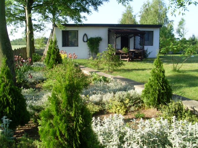 Dom otoczony jest ogrodem w którym znajduje się murowany grill, drewniane meble ogrodowe oraz specjalne miejsce na ognisko a także WĘDZARNIA.
