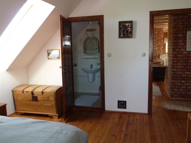 Do dyspozycji gości: 3 pokoje z łazienkami, andresola z kanapą, kuchnia z pełnym wyposażeniem, jadalnia, salon kominkowy, salon telewizyjny, kącik brydżowy, domowa biblioteka, gril, rowery, łódki, kajaki, leżaki