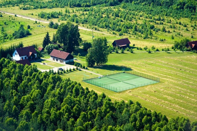 Jedyna w Polsce Prywatna Wieś - Domki Mazury, położona w uroczym miejscu na Mazurach (18 ha leśnej polany, ok. 1 km od jeziora Pluszne. Jest miejscem dla ludzi, którzy chcą połączyć naturę, spokój i luksus. Tu otoczenie jest dopasowane do potrzeb nawet najbardziej wymagających gości. Architektura i urządzenie wnętrz nie są przesycone, co daje możliwość pełnego relaksu. Minimalizm połączony z zabytkowym charakterem naszej wioski tworzy wymarzone miejsce spotkań ludzi kultury i sztuki. W ofercie całoroczny wynajem domu na mazurach oraz apartamentu wraz z posiłkami na specjalne zamówienie. Dom wyposażony jest w aneks kuchenny umożliwiający przygotowywanie posiłków w własnym zakresie. Dla gości Prywatnej Wsi są organizowane przyjęcia okolicznościowe, bankiety, szkolenia.