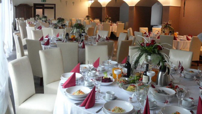 W Domu Weselnym imprezy odbywają się na klimatyzowanej sali na 120 osób.