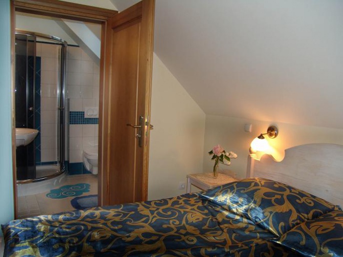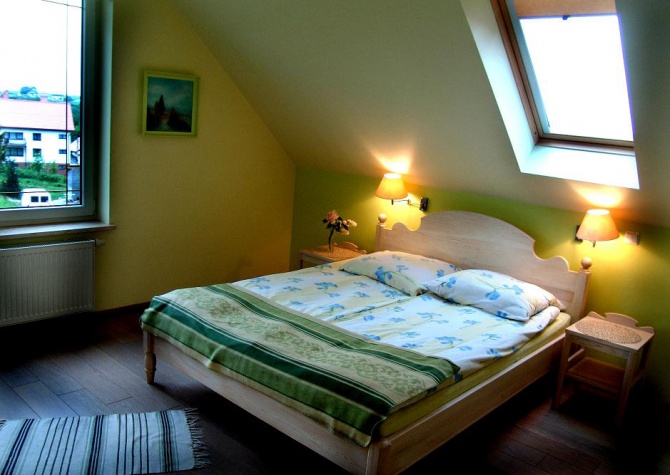 Pokoje 2,3-osobowe oraz apartament 5-osobowy.