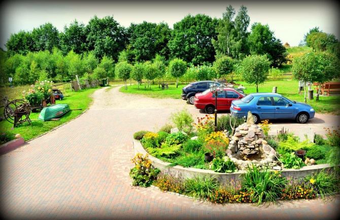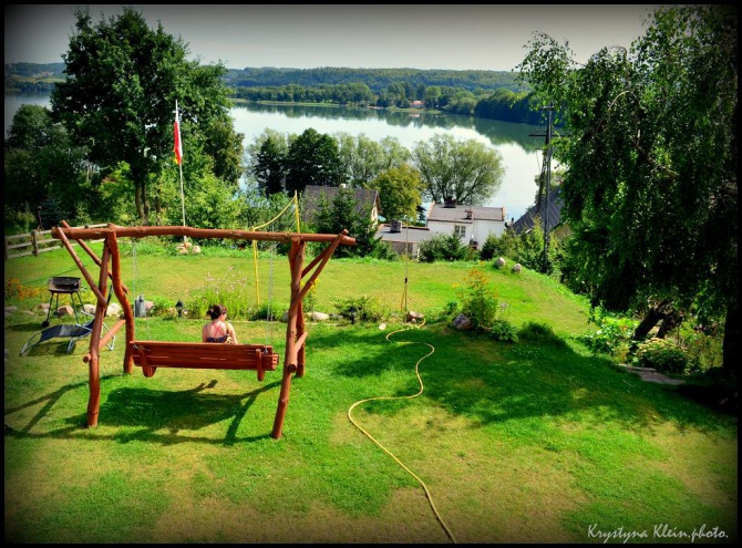 Wokół domu , dużo miejsca do wypoczynku, Ognisko, piaskownica dla dzieci, pole do gry w siatkówke, huśtawka , meble ogrodowe oraz grille.