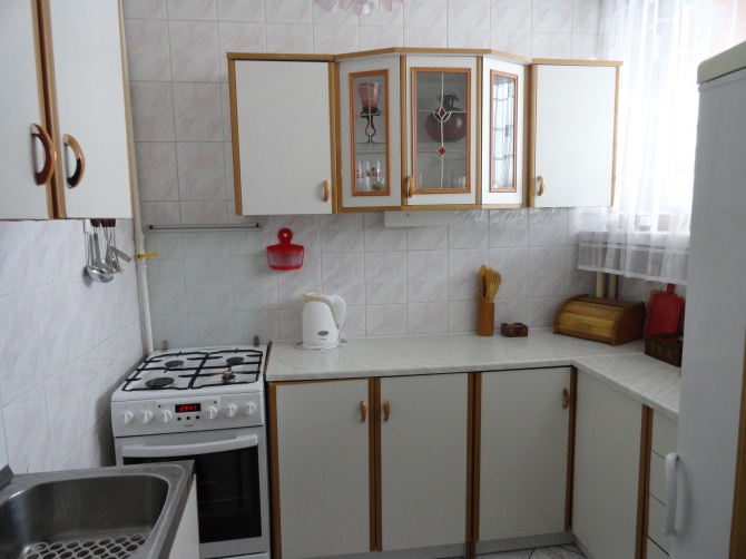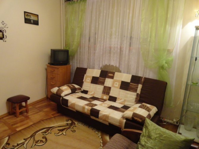 Mieszkanie kompletnie wyposażone, m.in. lodówka, zamrażarka, piekarnik, pralka, żelazko, zastawa stołowa, pościel, ręczniki. Przygotowane do pobytu 5 osób – dwie dwuosobowe kanapy i jedna jednoosobowa. W każdym pokoju telewizor, dostęp do internetu. Kuchnia oddzielna w pełni urządzona.