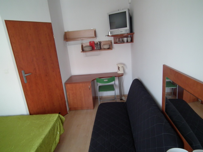 Apartament w Karwi - bardzo blisko plaży. Dokonała lokalizacja. Przytulny, elegancki pokój max. 5 os. posiadający własną łazienkę i toaletę. Dodatkowo wyposażony w lodówkę, kuchenkę mikrofalową, telewizor, czajnik bezprzewodowy. Wejście z tarasu, na którym znajdują się meble balkonowe. Do apartamentu przydzielone jest miejsce parkingowe. Doskonałe miejsce na odpoczynek z dziećmi - dużo bezpiecznych miejsc spacerowych.