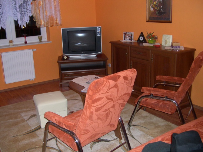 Samodzielne, komfortowe, w pełni wyposażone mieszkanie w nowym osiedlu z parkingiem przed budynkiem. Mieszkanie przewidziane jest dla 4-osobowej rodziny a do spania są dwa łóżka jednoosobowe w sypialni i wersalka w pokoju z aneksem kuchennym i wyjściem na balkon. W wyposażeniu m.in. jest radio, telewizor, czajnik bezprzewodowy, suszarka do włosów, żelazko z deską do prasowania, pralka, lodówka, naczynia stołowe i kuchenne oraz inne sprzęty codziennego użytku. Terminy pobytu ustalamy telefonicznie lub na e-mail