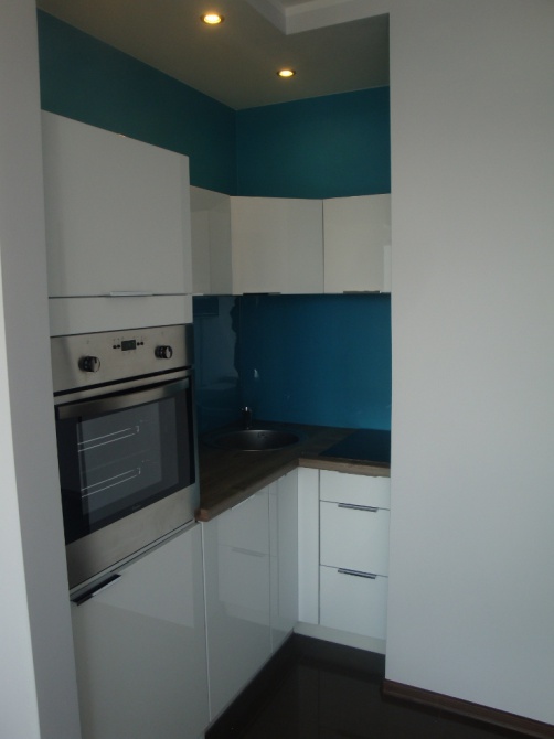 W części kuchennej stół z krzesłami oraz lodówka, zmywarka, kuchenka elektryczna, piekarnik elektryczny, czajnik elektryczny, pełna zastawa stołowa i kuchenna. W łazience pralka. W salonie oraz sypialni TV.