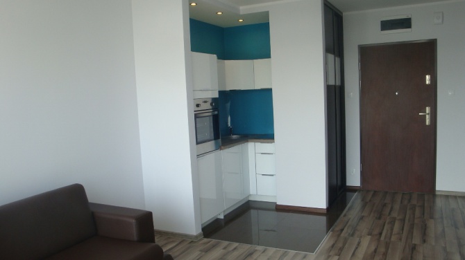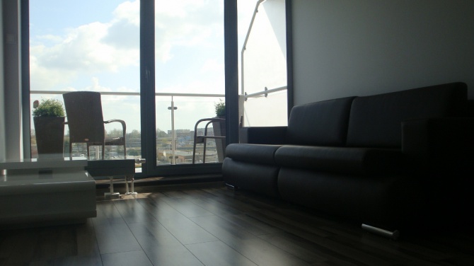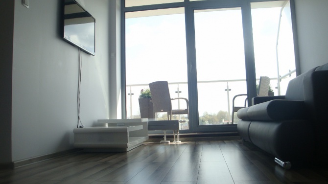 Nasz apartament zapewni Państwu relaks i upragniony spokój. Apartament o powierzchni ok. 30 m² oraz taras o powierzchni ok. 9 m² usytuowane jest na IV piętrze w nowo wybudowanym budynku wyposażonym w windę, pomieszczeniem dla rowerów i wózków. Apartament urządzono z myślą komfortowego wypoczynku dla 4 osób. Składa się z pokoju dziennego z aneksem kuchennym oraz sypialni i łazienki. Kuchnia w pełni wyposażona, łazienka wygodna i nowoczesna (wanna). W sypialni łóżko (160 x 200) z możliwością rozdzielenia na dwa pojedyncze łóżka (80 x 200). Dodatkowo w pokoju dziennym rozkładana sofa (150 x 200).
