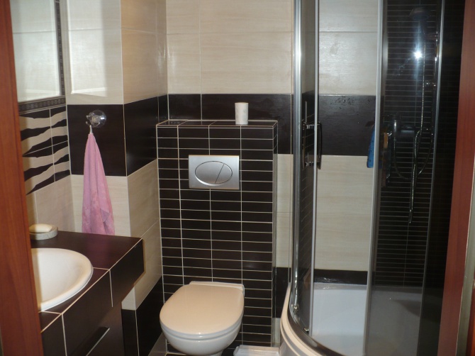 - łazienka w wysokim standardzie z kabiną prysznicową, WC, umywalka, pralka