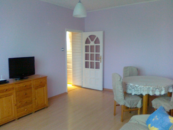Do wynajęcia apartament o powierzchni 56m2, położony w centrum (website hidden) Państwa dyspozycji oddajemy: mieszkanie 2 pokojowe na 4 piętrze wyposażone we wszystko co jest potrzebne do przyjemnego pobytu w nadmorskim kurorcie min: w pełni funkcjonalna kuchnia z wyposażeniem zmywarka , pościel , telewizor , radio, TV kablowa , internet ,itp. Oferuję 4 miejsca do spania (sofa 2 osobowa, 2 x tapczaniki }.. W łazience znajduje się kabina prysznicowa ,pralka .