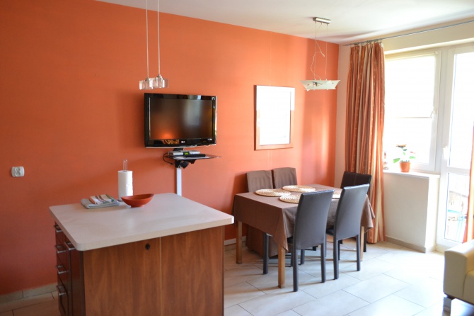 Przyjemna lokalizacja apartamentu - spokojna okolica, dużo zieleni i bezpieczne miejsce zabaw dla najmłodszych, czynią nasz lokal idealnym na wypoczynek dla rodzin z małymi dziećmi.