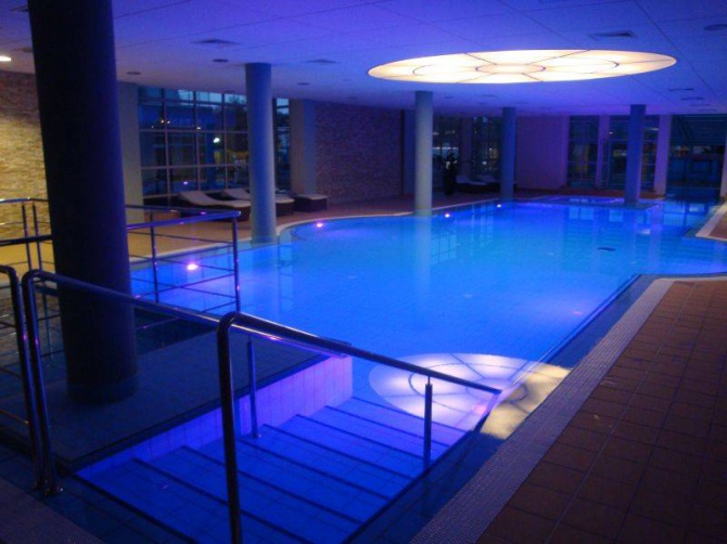 Do użytku gości pozostaje również kompleks basenowy, składający się z krytego basenu z hydromasażami, kaskadą, gejzerami wodnymi, brodzikiem z podgrzewaną wodą dla dzieci, dwóch jacuzzi, Świata Saun oraz groty solnej. (Uwaga: jednorazowe wejście na basen wraz z korzystaniem z kompleksu saun i groty solnej: 30,-pln od osoby. Basen czynny od godz. 12.00 do 21.00)