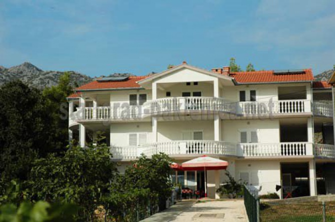 Apartamenty znajduja się w willi otoczonej zielenią, pięknie położonej, z ogromnym podwórzem o łącznej powierzchni ponad 2000 m2. Willa dysponuje 12 apartamentami mogącymi pomieścić ponad 40 osób. Atutem tej willi jest bliskość morza i przepiękne widoki, z jednej strony morze, z drugiej zaś góry. Niektóre z apartamentów są klimatyzowane i mają podłączenie do internetu.