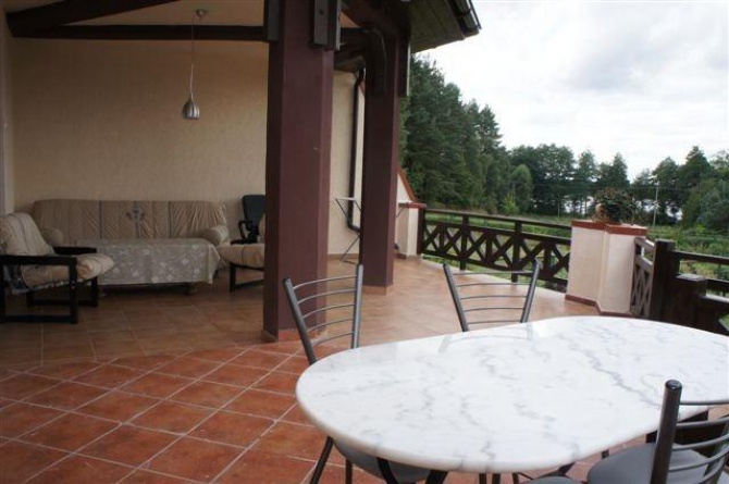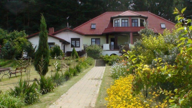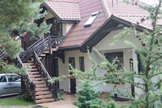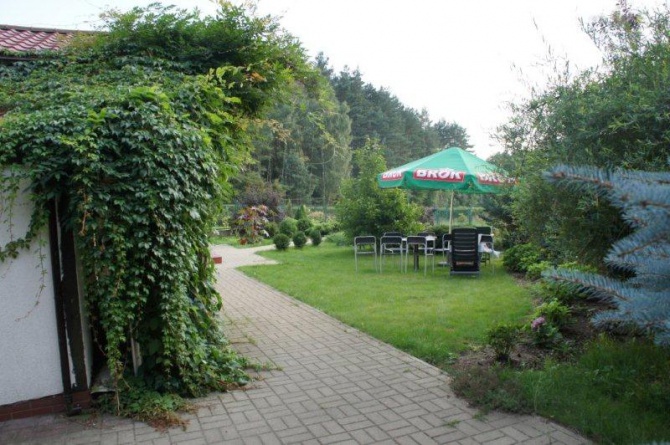 Dom dla 3 rodzin, spokojne, słoneczne położenie, bezpośrednio na skraju lasu, 100 m od jeziora, otoczony zielenią. Do wspólnego użytku: teren rekreacyjny 2'800 m2 (ogrodzony). Taras (40 m2), grill. Informacja dodatkowa: właściciel mieszka w tym samym budynku. 100 m od jeziora Krosino z możliwością kąpieli (dno piaszczyste, łagodne - teren Parku Krajobrazowego, z obowiązującą strefą ciszy - łodzie wyłącznie z silnikiem elektrycznym) i miejscem na ognisko. Wypożyczalnia sprzętu wodnego 100 m. Przystanek autobusowy 400 m. Sklep (czynny w sezonie) 100 m. Inne sklepy 2-4 km. Supermarket, restauracje 11 km. Tenis 5 km. Miejsca parkingowe na terenie działki. Dom posiada ujęcie wody pitnej z własnej studni głębinowej (86 m), z doskonałą wodą. Możliwość wypożyczenia łódki wędkarskiej wiosłowej, niedużej łódki żaglowej i rowerów.