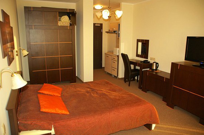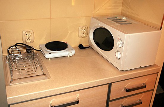W każdym apartamencie jest aneks kuchenny w którym, jeśli chcesz możesz sobie przygotować ciepły posiłek. W aneksie masz kuchenkę mikrofalową, kuchenka elektryczna, czajnik elektryczny, lodówkę oraz naczynia i sztućce.