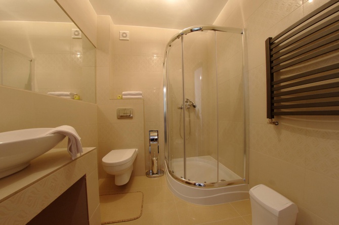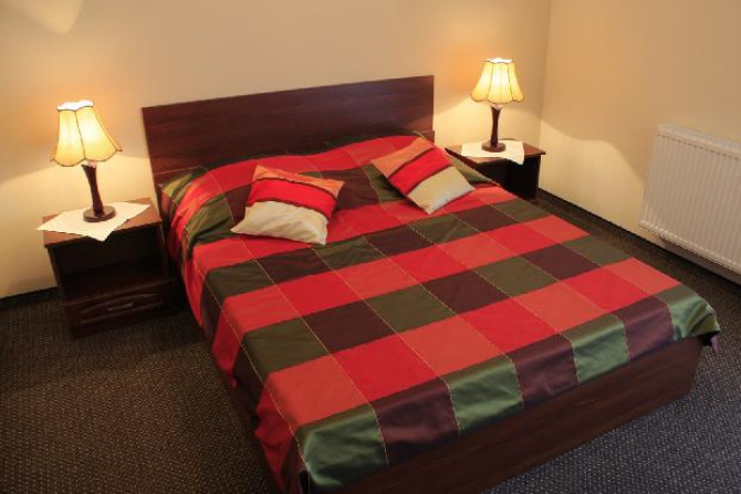 5 apartamentów dwupokojowych składa się z: pokoju dziennego (tv LCD, komoda, ława, fotele, sofa rozkładana 2-osobowa; aneksu kuchennego (płyta ceramiczna, czajnik, opiekacz, naczynia, zastawa, mikrofala, lodówka); sypialni (łoże małżeńskie, nakastliki, toaletka, szafa); łazienki (prysznic, umywalka, podgrzewana podłoga, wc) oraz przedpokoju (szafa, lustro, wieszak, żelazko)