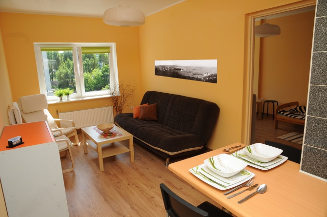 Apartament Nr 3 zaskakuje otwartością, jasnym i wygodnie urządzonym wnętrzem. W mieszkaniu znajduje się telewizor LCD z odtwarzaczem DVD oraz telewizją kablową. W łazience kabina z głębokim brodzikiem. Kolejnym atutem tego mieszkania jest jego położenie: 5 min od Dworca Głównego w Gdyni: