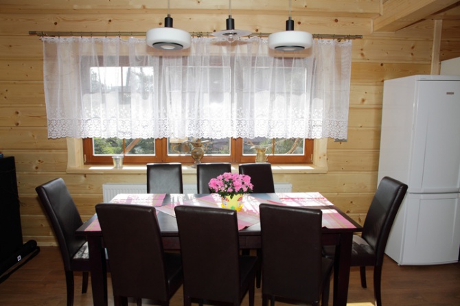 Do dyspozycji gości oferujemy nowy, przyjazny, drewniany dom z dużym tarasem, ogrodem i miejscami parkingowymi. Teren jest ogrodzony, dom zabezpieczony alarmem i systemem przeciwpożarowym. Może pomieścić 13 osób. We wszystkich pomieszczeniach domu działa bezprzewodowy dostęp do internetu.