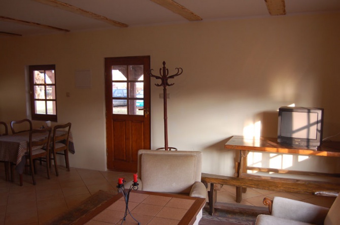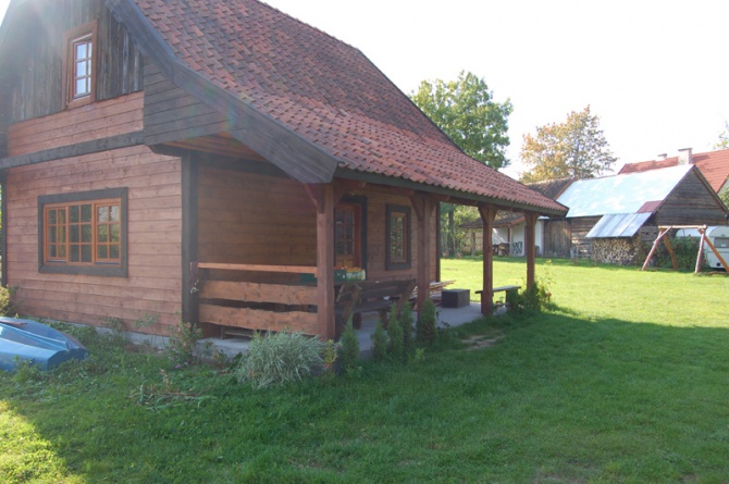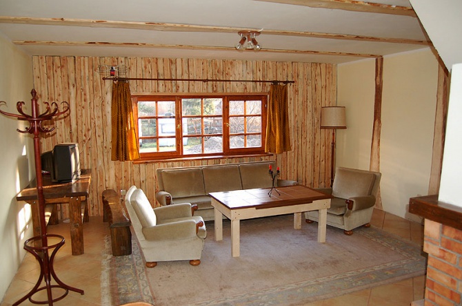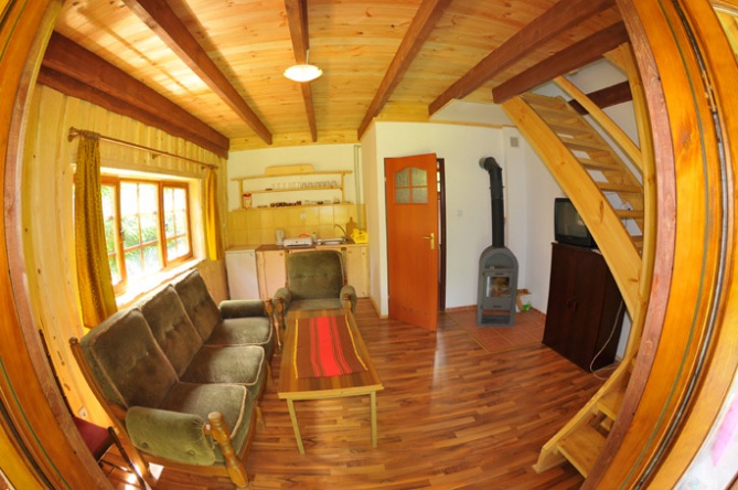 - Całorocznym domem o powierzchni ok. 70 m2. Na parterze znajduje się salon z kominkiem, aneks kuchenny oraz łazienka. Na piętrze dwie sypialnie czteroosobowe. Cena: pierwsza połowa lipca i druga połowa sierpnia 200 PLN, połowa lipca - połowa sierpnia 250 PLN, pozostałe terminy do uzgodnienia