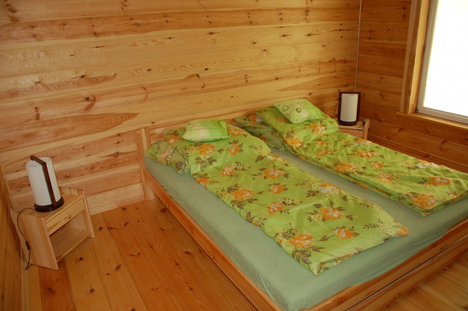 Domek jest wykończony w bardzo wysokim standardzie, z 3 sypialniami, łazienką, toaletą i salonem. Wyposażony jest w aneks kuchenny, kino domowe, klimatyzację, grill itp.