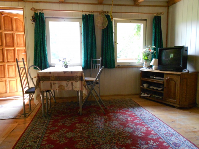 Domek letniskowy dla 4 osób, z możliwościa zakwaterowania kolejnych 2 osób za niewielką dopłatą (20 zł od osoby). Miejscowość Cierzpiety , gm.Piecki, nad jeziorem Mokre.