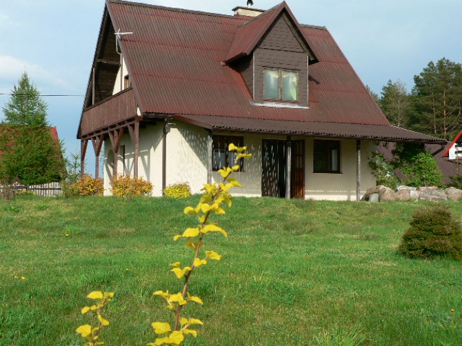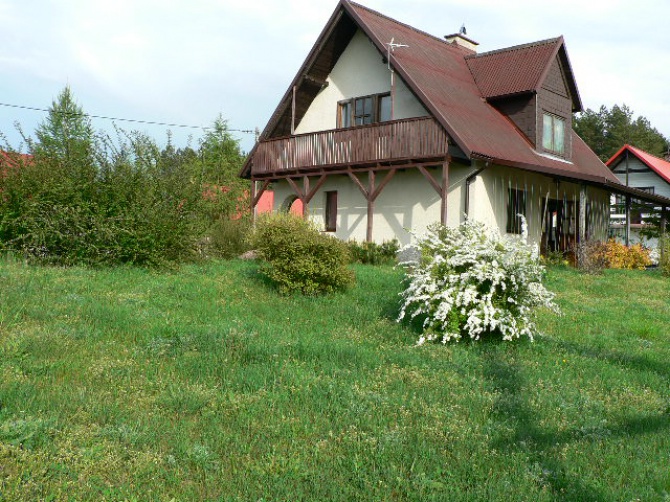 Do dyspozycji gości: łódka wiosłowa 3 osobowa, 3 osobowy kajak - canoe, rowery, grill murowany, huśtawka ogrodowa, piaskownica, meble ogrodowe, leżaki, miejsce na ognisko. Możliwość parkowania na działce do 3 samochodów. Zakwaterowanie dla 6-8 osób. Okres pobytu minimum 7 dni (przyjazd gości od godz.13.00, wyjazd do godz.9.00).