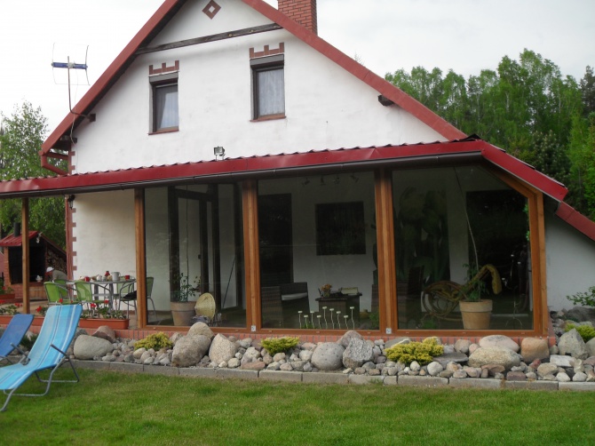 Polecamy domek letniskowy na Kaszubach tym, którzy chcieliby znaleźć spokojne, bardzo urokliwe miejsce w lesie nad jeziorem. Domek jest dość duży, ma około 100m2 z wygodami dla rodziny 8 os., murowany dwukondygnacyjny z 2 tarasami /jeden zadaszony/. Posesja 800m ogrodzona. Media: prąd, ciepła woda /bojler/. Dom do dyspozycji naszych gości przez cały rok. Posiada dwie sypialnie na piętrze oraz WC, na parterze duży salon z kominkiem, TV, kuchnia /kuchenka gazowa + piekarnik, mikrofalówka, lodówka, naczynia kuchenne, garnki itd./, łazienka z wanną, prysznic oraz WC. Garaż na jeden samochód oraz miejsce postojowe na dwa samochody. Na terenie działki znajduje się miejsce do biesiadowania /grill, wędzarnia/, piaskownica dla dzieci, ława bujana, miejsce na siatkówkę oraz koszykówkę. Nasz domek położony jest na skraju Borów Tucholskich w okolicy 3 jezior: Pani, Struga oraz Wielkie. Cena: 170 PLN za domek + opłata za prąd wg licznika. Każda dodatkowa osoba powyżej 8 osób płatne 60zł za dobę.