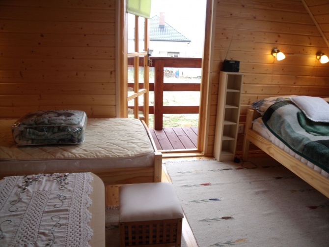 Domek letniskowy znajdujący się w ustronnej cześci Jarosławca ,domek składa się z dwóch osobnych części,każda część zawiera : na parterze aneks kuchenny (mikrofala, kuchenka ,naczynia ,sztućce, lodówka ) ,łazienka ,TV ,sofa wypoczynkowa na pietrze sypialnia (dwa łóżka pojedyncze i jedno podwójne), na zewnatrz taras wypoczynkowy , miejsce na grilla. Domek jest nowy ,zbudowany z drewna,funkcjonuje od trzech lat , jest bardzo ładnie wykonczony,teren jest ogrodzony.Idealny dla 4 osób ,rodziny lub dwóch rodzin