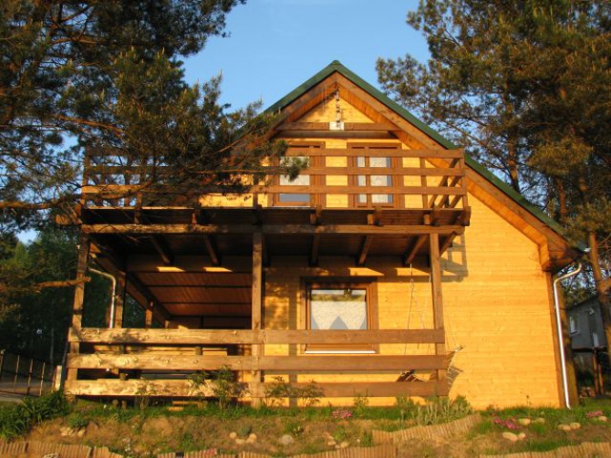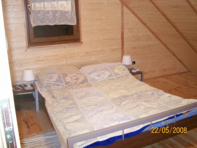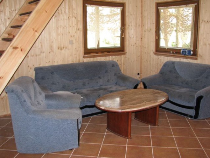 Domek składa się z aneksu kuchennego, salonu z kominkiem ogrzewającym cały domek, łazienki, na poddaszu znajdują się trzy sypialnie.