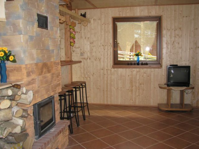 Oferujemy pobyt w drewnianym całorocznym domku z kominkiem, przytulnie urządzonym, przeznaczonym dla jednej lub dwu rodzin. Można tu miło spędzić urlop, ferie zimowe, długie weekendy, święta czy też urządzić wieczór kawalerski, panieński lub Sylwestra.