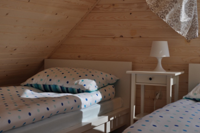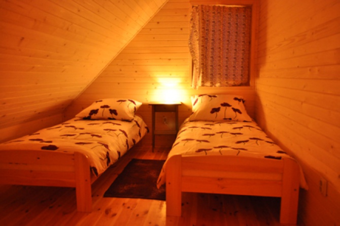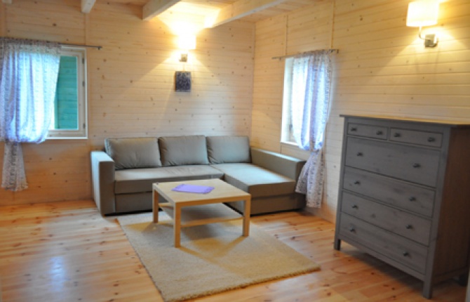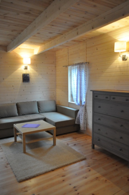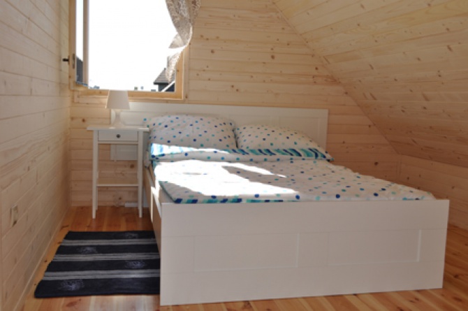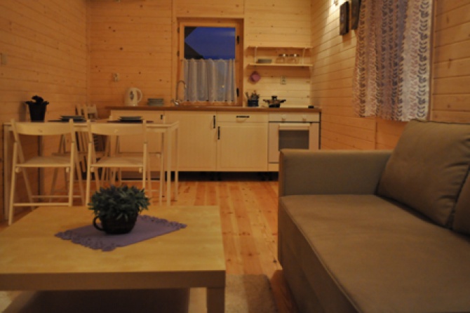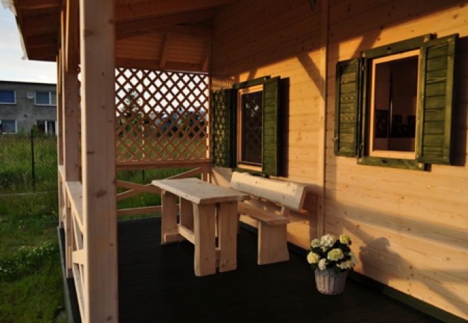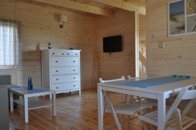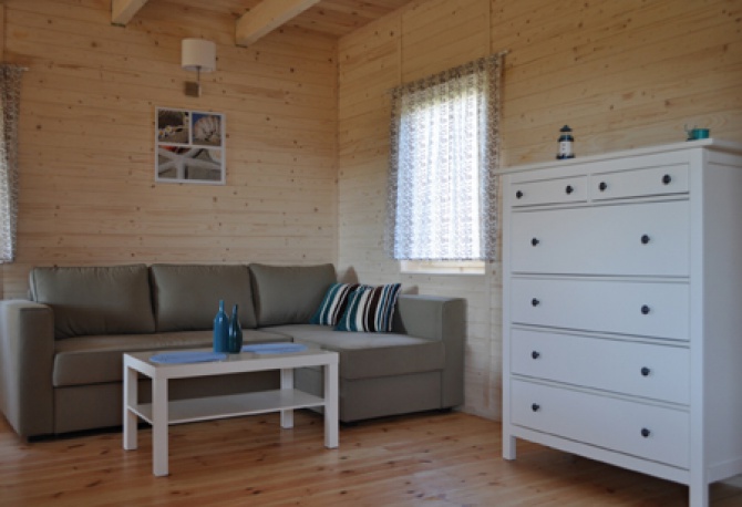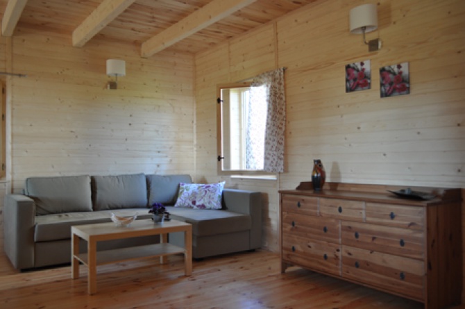 Maksymalnie 6 osobowe domki, wybudowane z drewna sosnowego o powierzchni użytkowej ok. 60 m /2 .Każdy domek posiada taras i miejsca parkingowe.