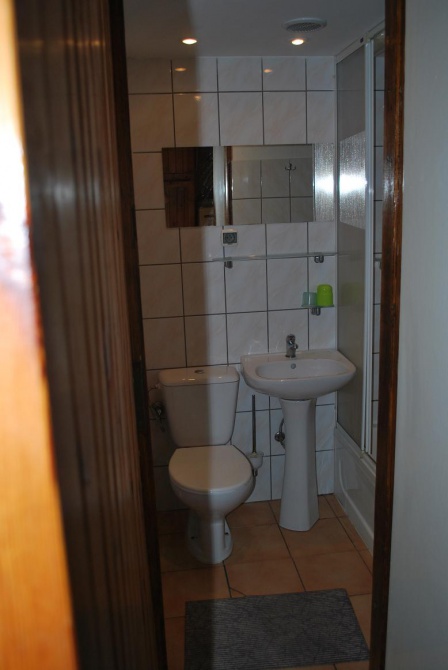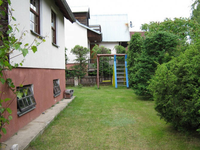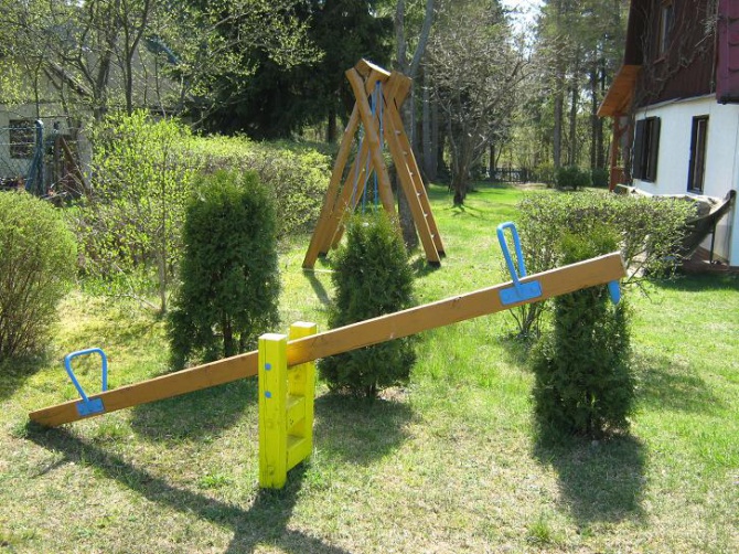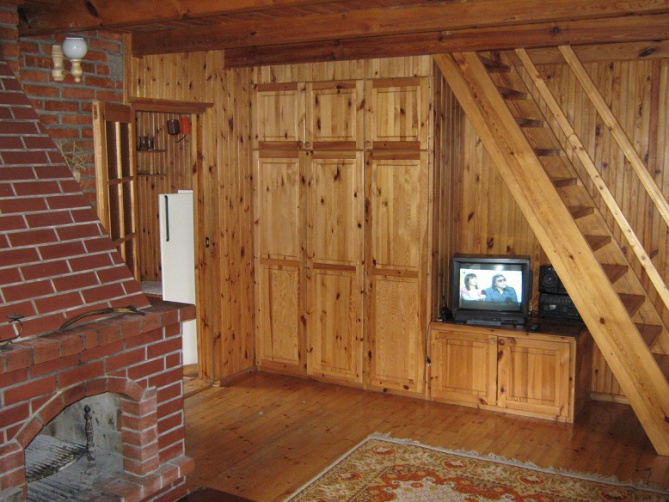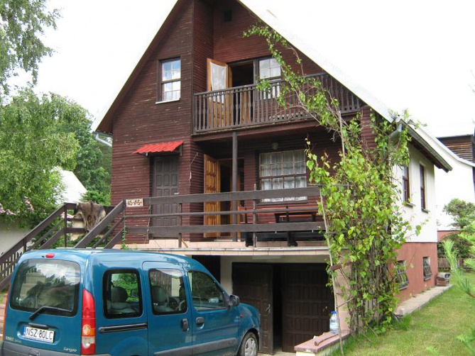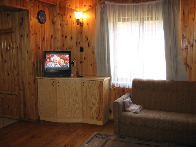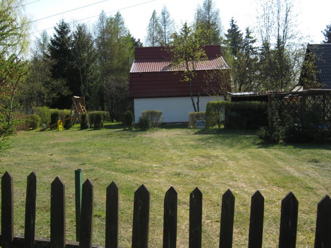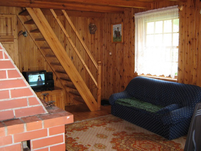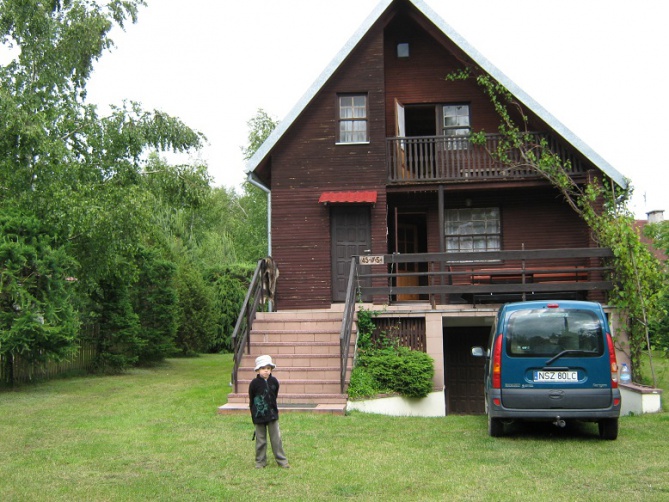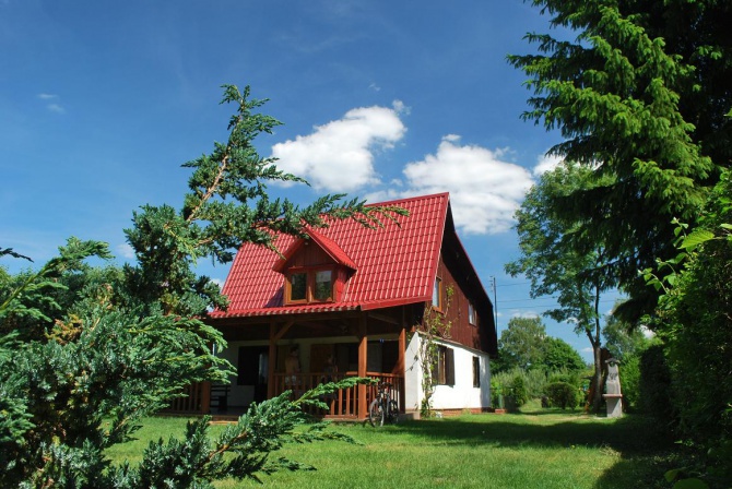 Domek podpiwniczony z garażem, przygotowany na przyjęcie 8 osób - 3 sypialnie 2-osobowe, antresola z wersalką (2-osobową). Na dole duży salon z kominkiem (wersalka 2-osobowa), łazienka, kuchnia, taras. W garażu stół do tenisa stołowego. Działka ogrodzona. Łódka do dyspozycji gości, jezioro 150 metrów od domku. Sklep oraz bar - 500 metrów od domku. Na terenie działki znajduje się mały plac zabaw dla dzieci.