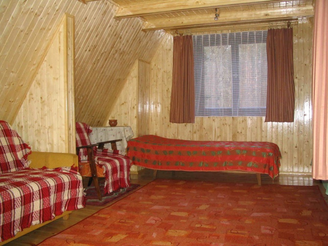 Piętro: 1 sypialnia 2 - osobowa, 1 sypialnia 3 - osobowa, taras