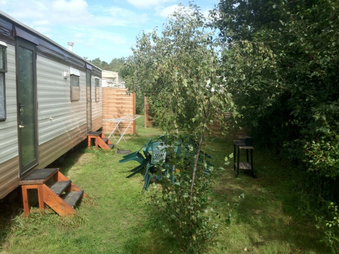 Aneks kuchenny z pełnym wyposażeniem: lodówka, kuchenka gazowa, zastawa stołowa na 6 osób, komplet kuchenny, komplet garnków i patelni, czajnik. Łazienka z prysznicem, toaleta i umywalka, suszarka do włosów. Salon z kompletem wypoczynkowym, kominkiem i TV. Każdy domek posiada odgrodzony i osłonięty teren ze stolikiem, fotelikami i parasolem, grilem oraz parawanem na plażę. Domki wyposażone są w pościel na 4-5 osób. Domki nie posiadają ręczników.