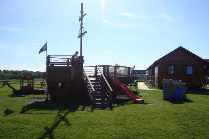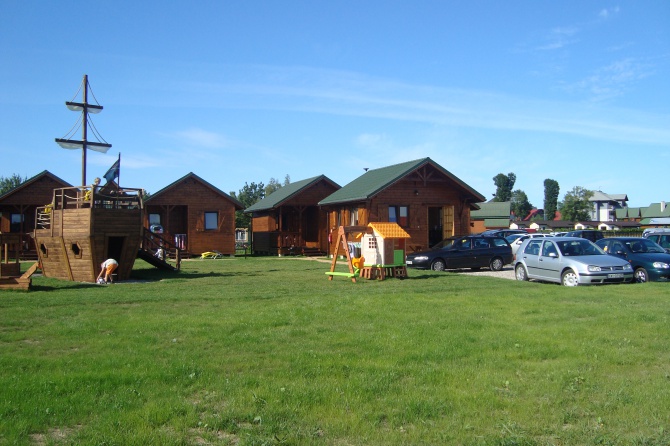 Nasz obiekt to doskonałe miejsce wypoczynku dla rodzin z dziećmi, specjalnie dla nich udostępniamy plac zabaw wyposażony w domki plastikowe, zjeżdżalnie, mega trampolinę oraz ... piaskownicę w kształcie statku!!!.