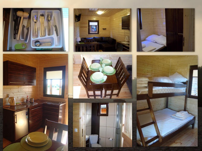 W każdym domku zapewniamy: Salon z jadalnią - w salonie rozkładana sofa 2 osobowa, komplet pościeli dla 2 osób, telewizor LCD z telewizją satelitarną, stół rodzinny dla 6 osób