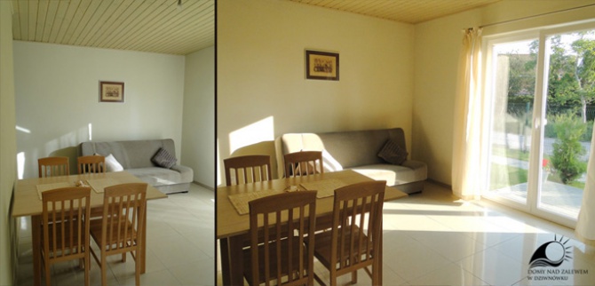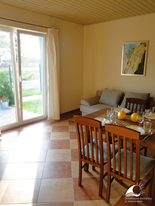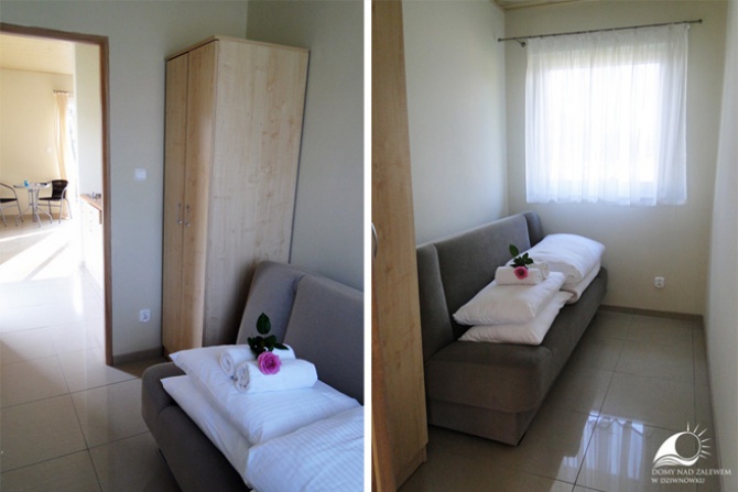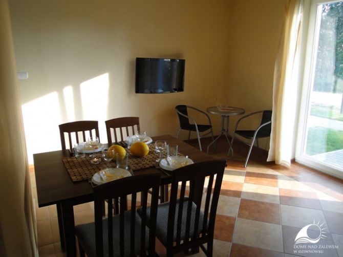W domkach czysta pościel i ręczniki, w aneksie kuchennym podstawowe wyposażenie ( sztućce, garnki, naczynia, kieliszki). Do dyspozycji również grill. Plac zabaw w odległości 20metrów od ośrodka. Spokojna okolica z widokiem na jezioro Wrzosowskie z wyporzyczalnią sprzętu wodnego i szkółką nauki windsurfingu i kitesurfingu. Do plaży 7 min spacerem.