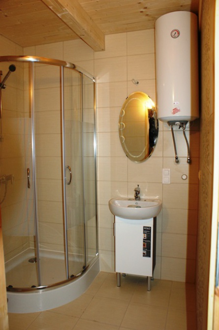 - łazienka wyposażona jest w umywalkę z szafką, toaletę i kabinę prysznicową.