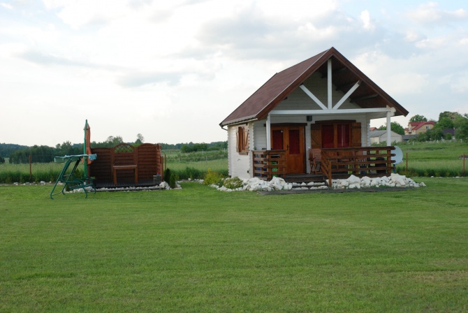 Dwa komfortowo wyposażone , nowe domki drewniane, kabina z hydromasażem, kuchnia-lodówka, czajnik, mikrofala, kuchnia elektryczna, ekspress do kawy, wyposażona w przedmioty niezbędne w kuchni ( zastawa stołowa, garnki itp),salon -kanapa, tv, dvd, nagłośnienie, kino domowe, sypialnia- dwuosobowe łóżko, antresola dla 4 osób, patio -stół ogrodowy i krzesła, taras , grill gazowy, Na terenie-basen, plac zabaw dla dzieci-domek pirata, bramka do piłki nożnej,piaskownica, zabawki do gry na powietrzu,2 rowery, teren ogrodzony, rozległy i bezpieczny dla dzieci. Miejsce oddalone o 30 m , w zagajniku do zabawy przy ognisku, cicha okolica, w pobliżu , za ogrodzeniem las, najbliższy sklep- 20 minut spacerkiem,Nie daleko do Nałęczowa, Kazimierza Dolnego,Lublina, Kozłówki, Puław.Zapraszam serdecznie - gwarancja wypoczynku.Teren jest tak wyposażony,że dzieci się nie nudzą, umożliwiają rodzicom na pełny wypoczynek a wyposażenie domków poczucie komfortu domowego.Przy dłuższych pobytach cena do negocjacji.