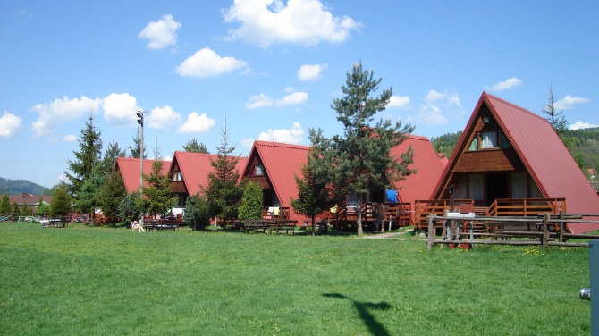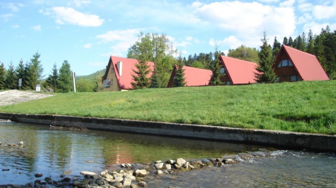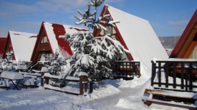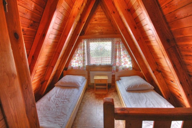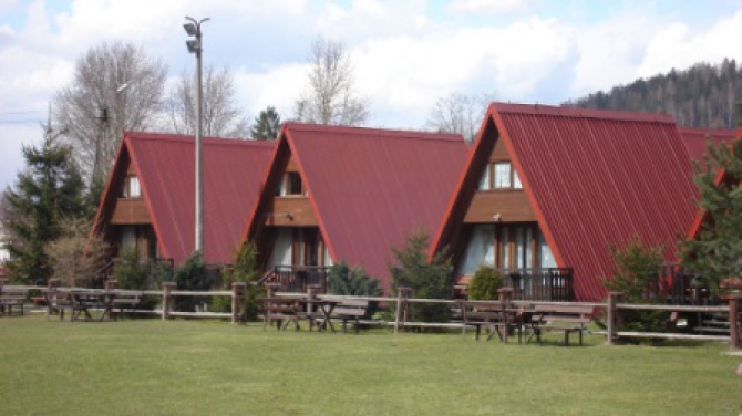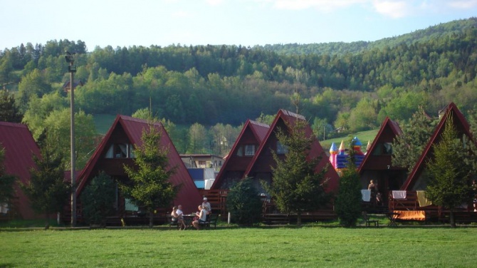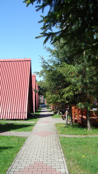 Domki posiadają dwie sypialnie dwu osobowe na piętrze i salonik z telewizorem, w którym znajdują się kolejne dwa miejsca noclegowe. W każdym domku znajduje się aneks kuchenny oraz łazienka z prysznicem i toaletą. Domki wyposażone są również w instalacje CO, która pozwala na wypoczynek w naszym ośrodku przez cały rok. W okresie letnim dysponujemy również polem namiotowym z pełnym węzłem sanitarnym.