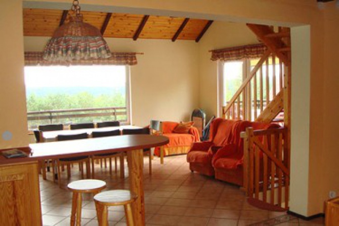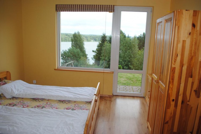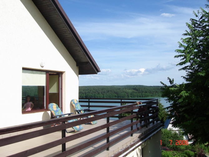 Dom letniskowy murowany, WSPANIAŁY WIDOK NA JEZIORO, o powierzchni 160 m2, z garażem, położony 52 km od Gdańska w okolicy Stężycy (Żuromino), 100 m od jeziora Raduńskiego. 4 sypialnie, duży salon połączony z dużą kuchnią. Działka o powierzchni 900 m2 jest położona w szczytowej części opadającego ku jezioru terenu, bardzo dobry i wygodny dojazd. Na działce znajduje się teren do zabaw dla dzieci z piaskownicą. Odsłonięty teren w kierunku jeziora tworzy wspaniałą panoramę widokową, którą można podziwiać ze wszystkich tarasów oraz przez okna salonu i sypialń. Miejsce do kąpieli znajduje się w odległości 80 - 100 m. Dom murowany jest wkomponowany w opadający teren brzegu jeziora. Na parterze znajdują się: duży salon z kominkiem i kompletem wypoczynkowym; w pełni wyposażony, duży kuchnia, łazienka z wanną. Z salonu prowadzą schody na piętro oraz na niski parter. Na niskim parterze znajdują się 2 sypialnie jedna z łóżkiem małżeńskim oraz pojedynczym, druga z dwoma łóżkami jednoosobowymi. Wejścia do sypialń są z przedpokoju, w którym znajduje się kącik wypoczynkowy. Z przedpokoju jest wyjście na ogród z widokiem na jezioro i okolicę. Na tym samym poziomie znajduje się łazienka z prysznicem i sauna dla 2-4 osób. Na piętrze znajdują się dwie sypialnie. Dom przeznaczony swobodnie dla 10 osób. Tel. Kontaktowy 501897025 lub 694992954 email rrubach@poczta.onet.pl