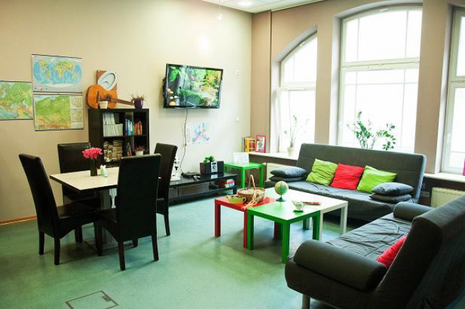 Do dyspozycji pozostaje również przestronny salon wypoczynkowy wraz z aneksem kuchennym i jadalnią, gdzie można napić się darmowej kawy i herbaty, zjeść śniadanie, przygotować własny posiłek, odpocząć na sofach, posłuchać muzyki, obejrzeć telewizję, porozmawiać lub wypić drinka.