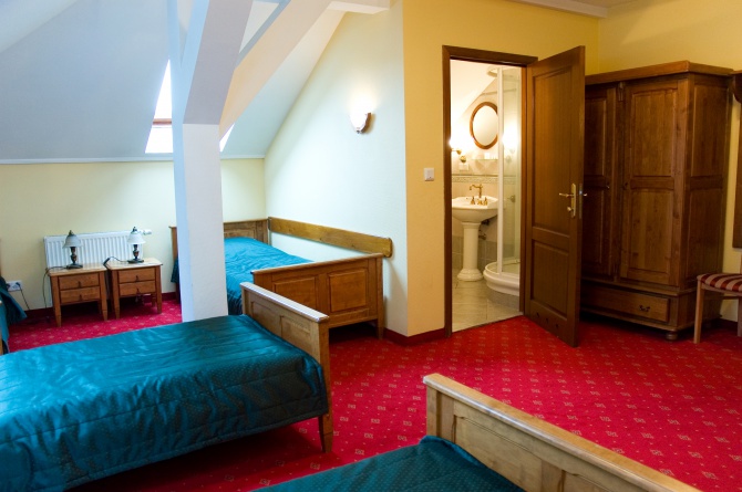 Pokoje urządzone są ze smakiem i starannością. Drewniane meble w ciepłych kolorach i stylowe łazienki sprawiają, że wypoczynek w nich jest przyjemnością.Do dyspozycji naszych gości oddajemy dwadzieścia dwa wygodne pokoje rozmieszczone w dwóch obiektach hotelowych.