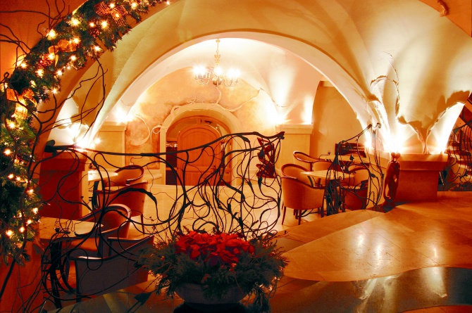 Czy to hall, czy sala kominkowa - niewidzialna granica a jednak otoczenie z duszą. To tu Jazz i wino pozwalają pozostawić niezapomniane wrażenie z kuracyjnej podróży do Cieplic.