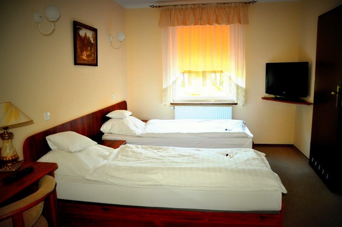 Oferujemy Państwu 64 miejsca noclegowe w 27 komfortowych pokojach wyposażonych w: łazienkę, telewizor LCD, Internet bezprzewodowy. Hotel objęty jest wewnętrzną siecią telefoniczną pomiędzy pokojami, a recepcją i restauracją. Doba hotelowa trwa od godziny 14 do godziny 12 dnia kolejnego.