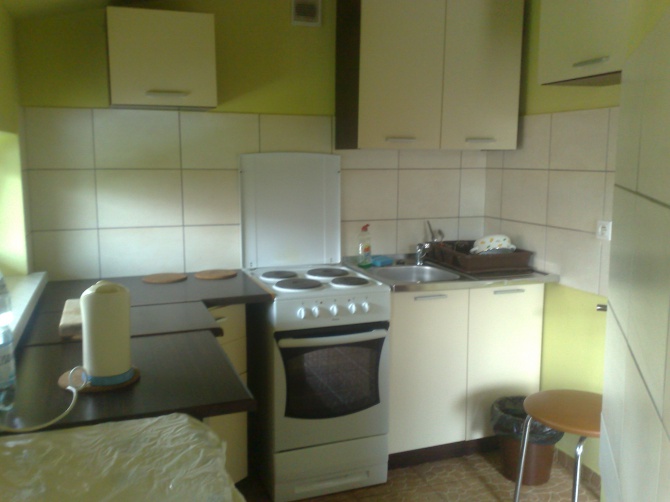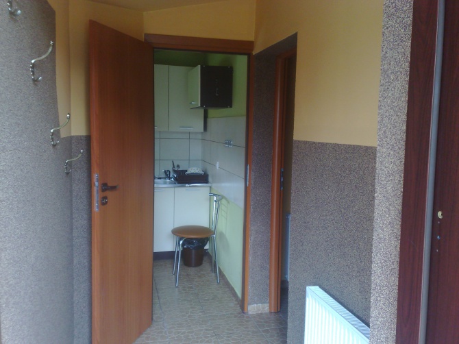 Dodatkowo ogólny korytarz i kuchnia całkowicie wyposażona. (Duża lodówka, zamrażarka, kuchenka z piekarnikiem, czajnik elektryczny, naczynia, sztućce).